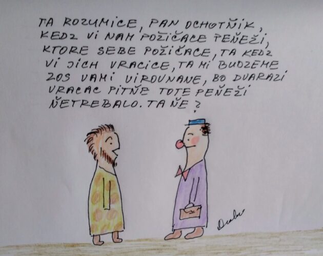 – Toľko, aby som v polovici mesiaca mohol vybrať peniaze z banky kartou a nie s pančuchou na hlave.